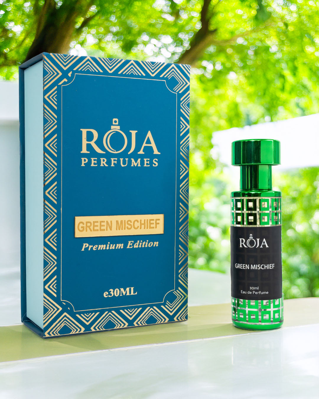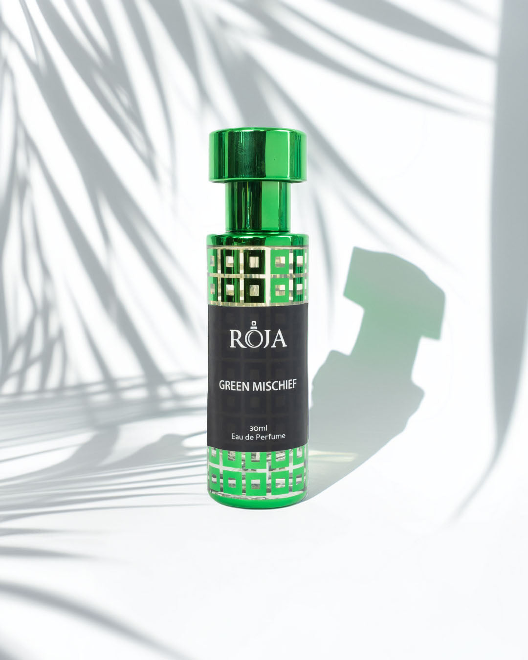 **GREEN MISCHIEF, a vibrant fragrance, combines zesty citrus and aromatic herbs for a refreshing experience.**